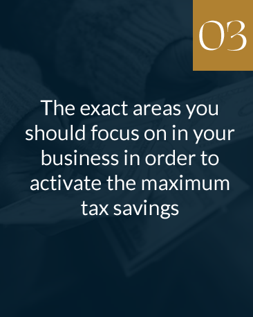 I’ve now coached several multi-million dollar businesses through a unique method I created to help them reduces their taxes and focus on building wealth.